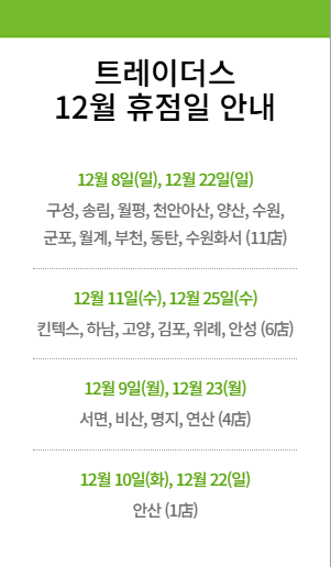 이마트 트레이더스 12월 휴점일 안내
