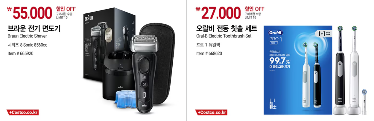 | Oral-B | 전동 칫솔 | 1+1 이벤트 | 구강 건강 관리 필수템 |
