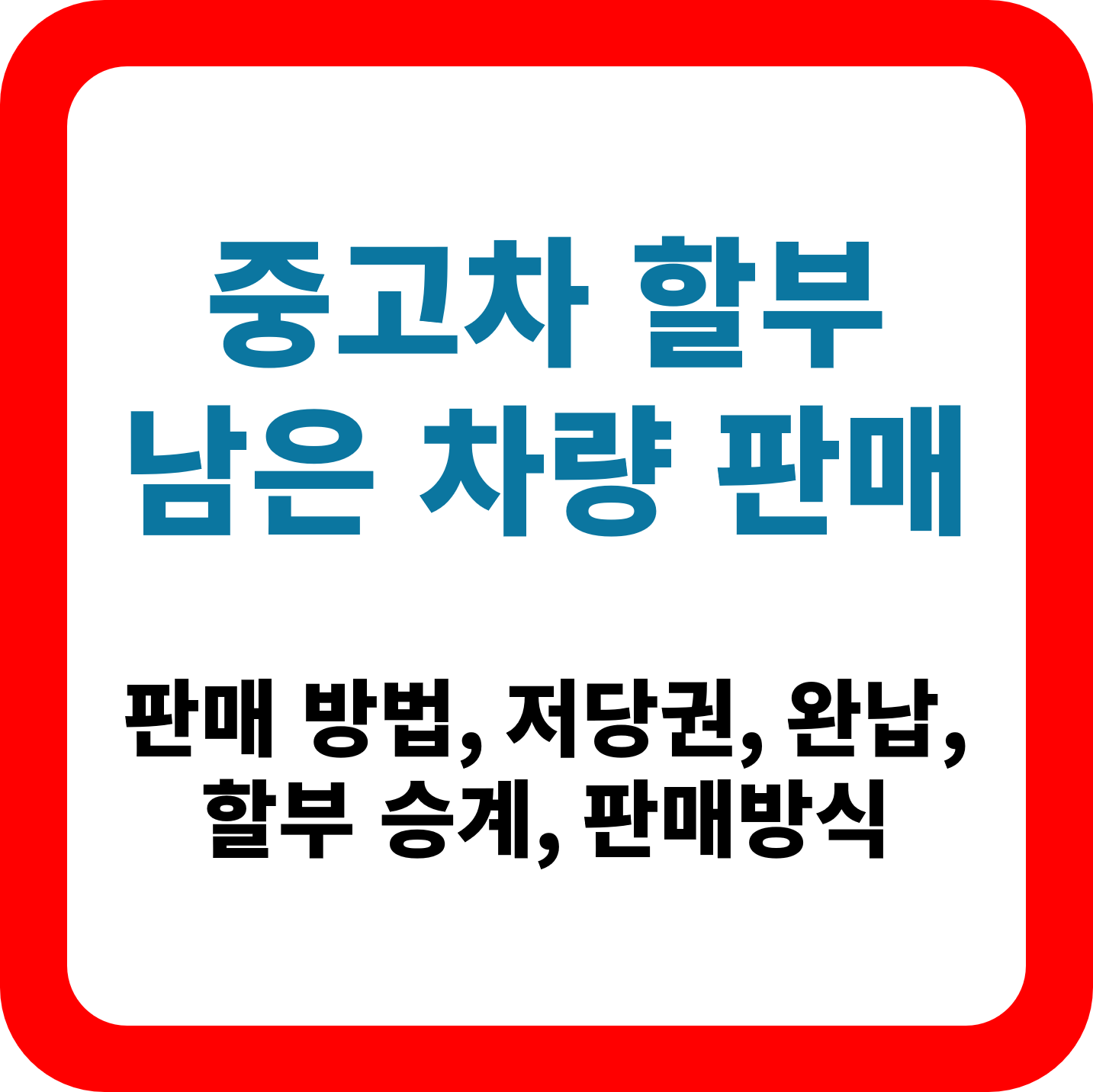 이 글에서는 중고차 할부가 남아 있는 차량을 안전하고 합법적으로 판매하는 방법을 안내합니다. 자동차 담보 대출, 저당권 해지, 할부 승계 방식, 중고차 딜러와의 거래 등 현실적인 해결책을