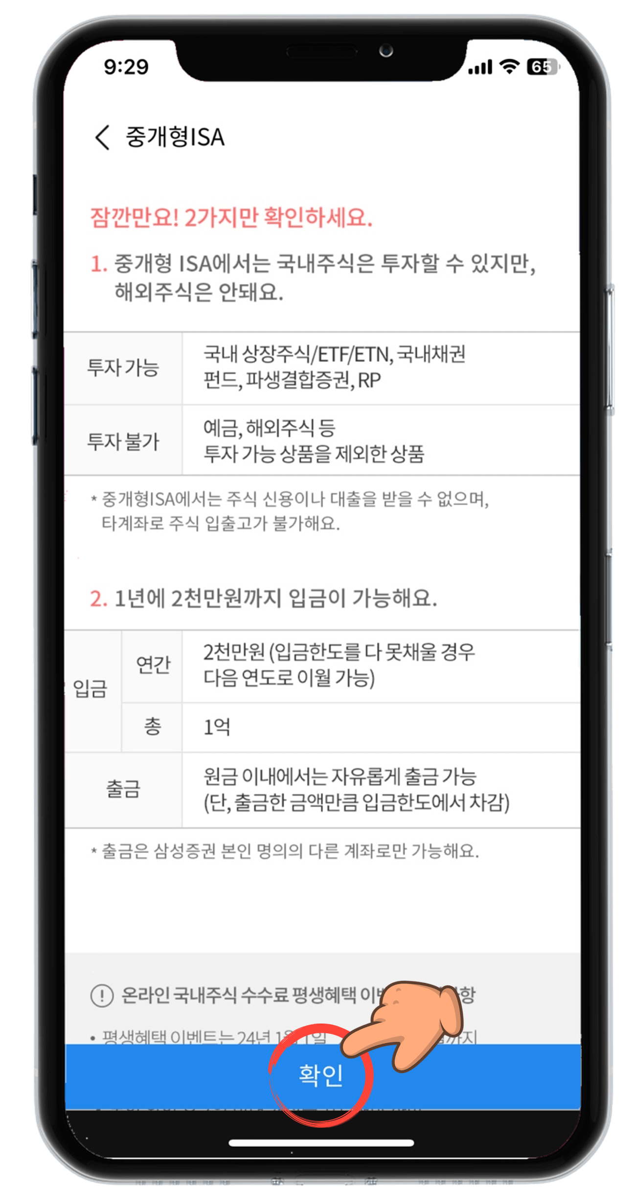 - 그다음 밑으로 내리면서 "수수료 혜택", "절세 혜택", "잠깐만요! 2가지만 확인하세요."를 꼭 읽어보시고 확인을 눌러 다음단계로 넘어가시는 것을 추천드립니다.